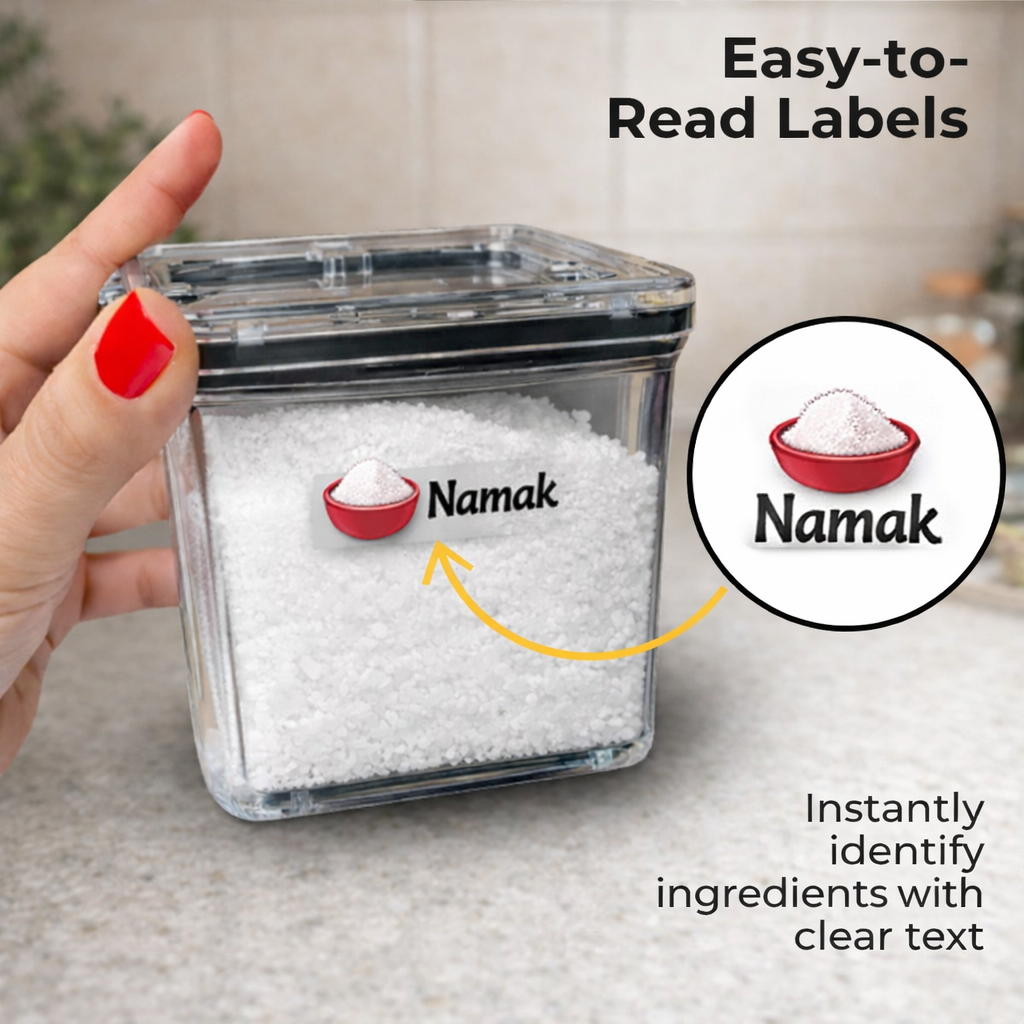 Pick your favorite set of stickers and stick them on any clean surface. Our stickers are easy to apply and remove, leaving no residue behind. Show off your organized kitchen and inspire others to do the same.